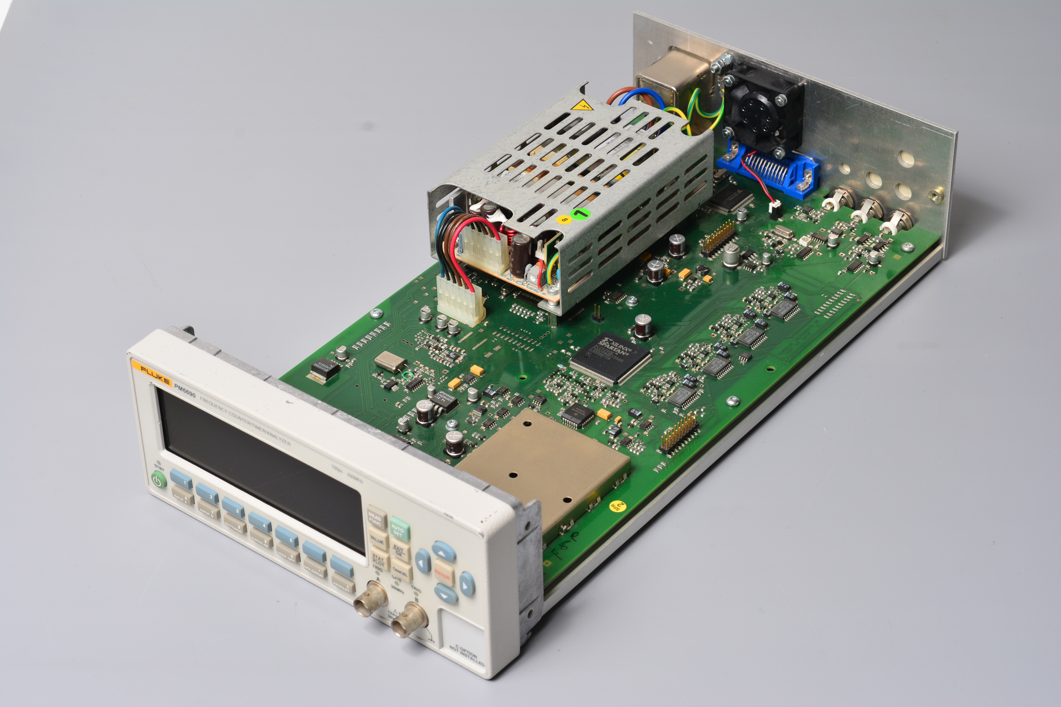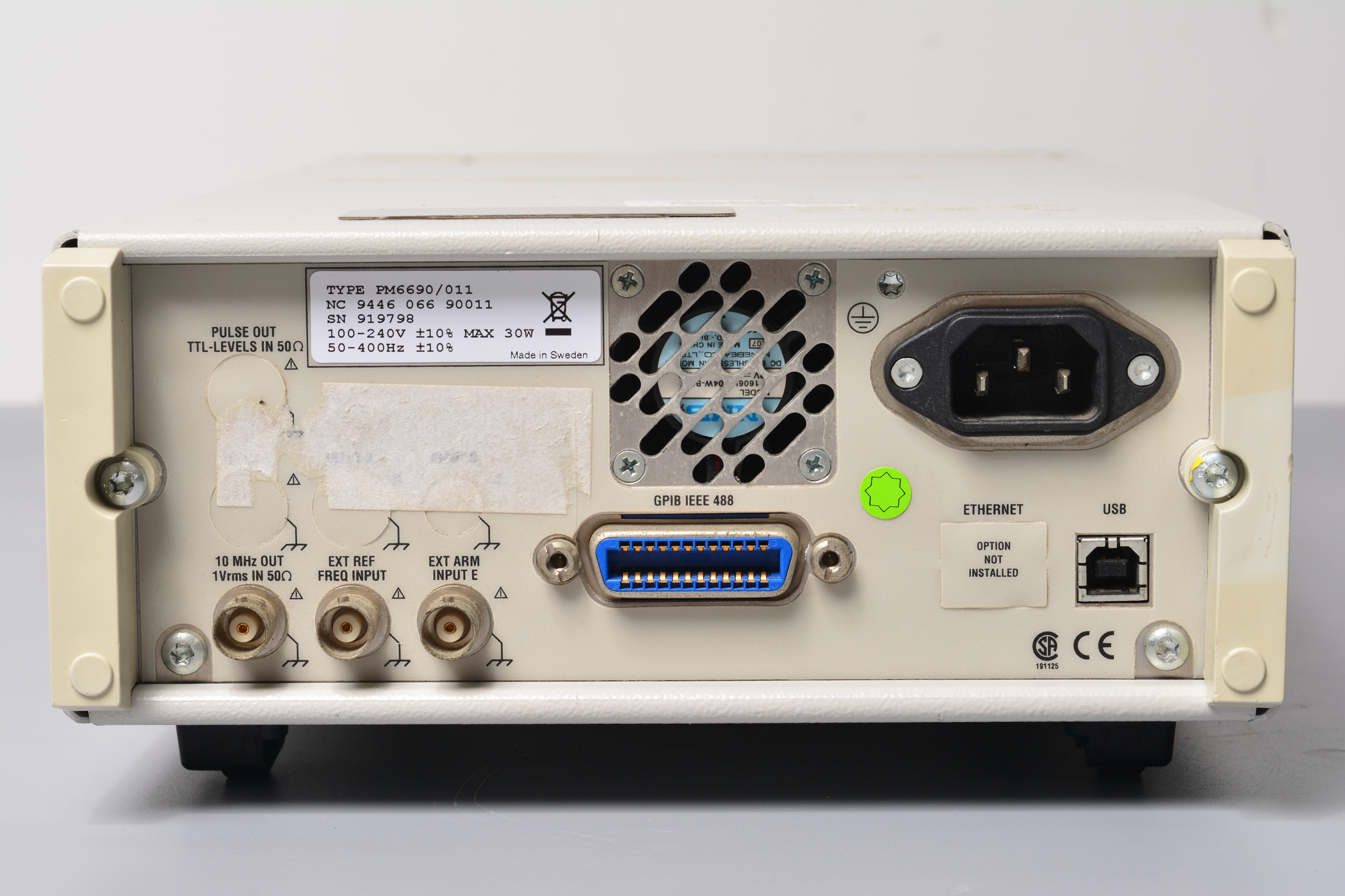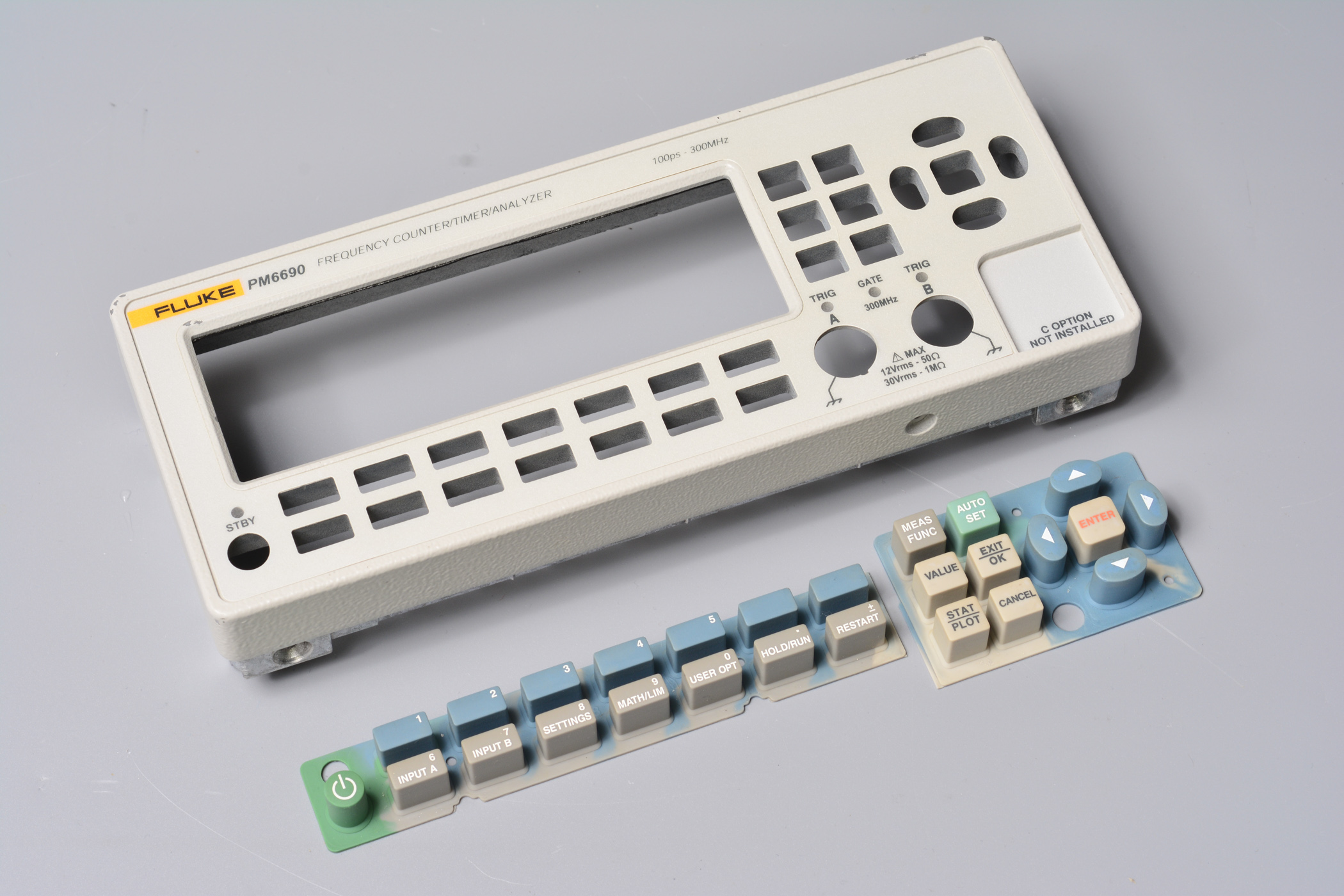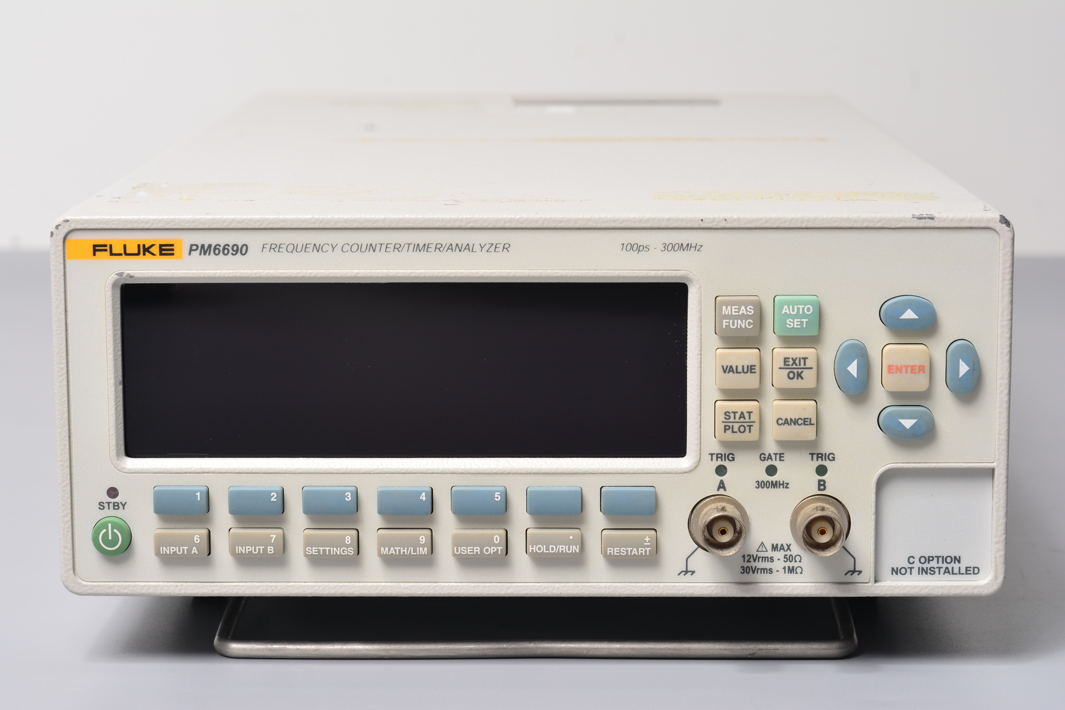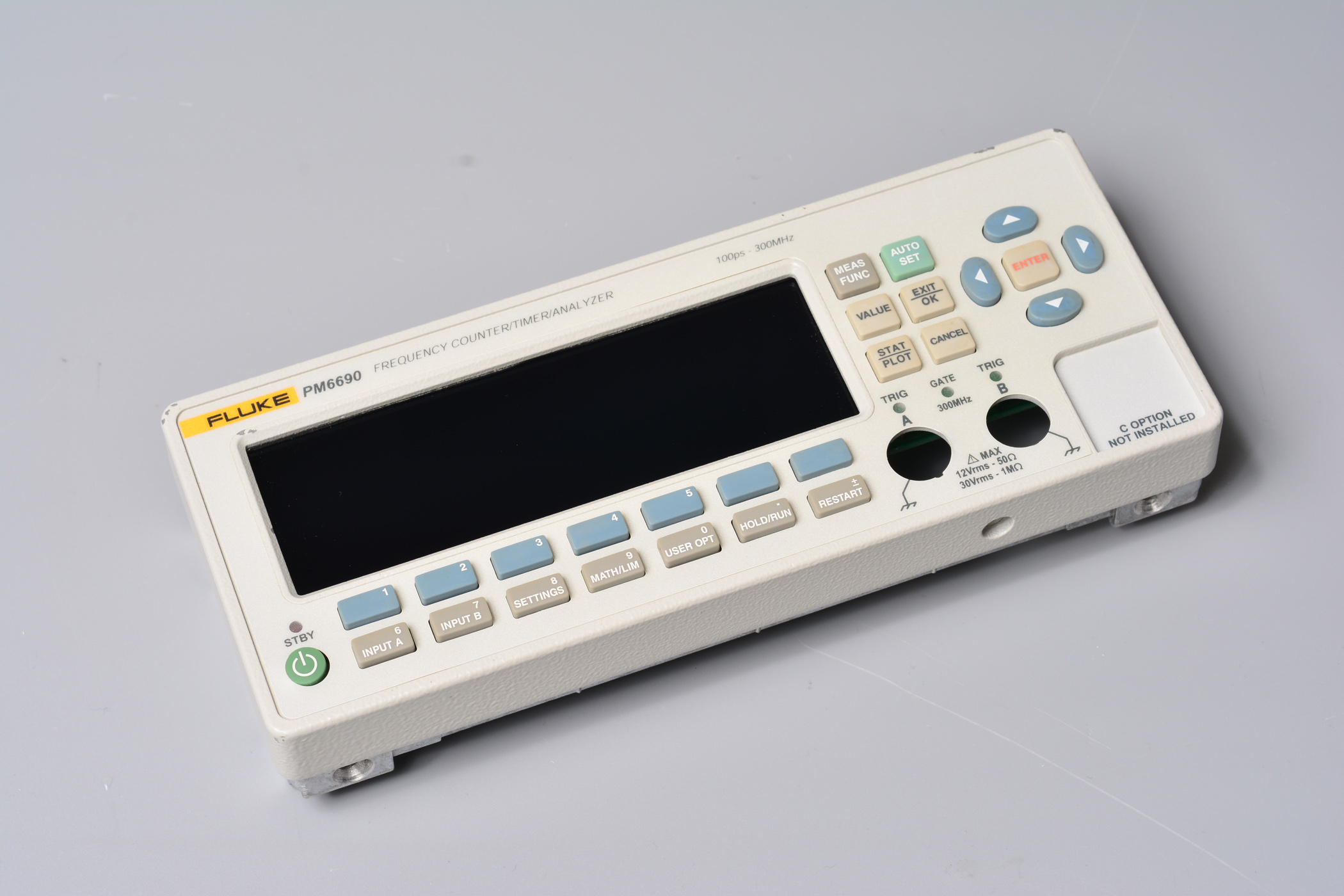 本次拆解的是一台比较新款的通用频率计。这可能是目前为止为我们博客上数不多的21世纪设计的产品。它于PENDULUM公司在2006年左右设计并冠以CNT-90的型号销售,同时也OEM给Tektronix和FLUKE分别按照FCA-3000和PM6690的型号销售。尽管型号不同,但它所运行的固件和硬件都完全相同。PENDULUM则可以追溯到飞利浦时代的电子测量部门,在上个世纪飞利浦制造了许多高性能的频率计,随后在90年代飞利浦将其电测部门出售给FLUKE。我认为随后其中的时频部门独立出来形成了PENDULUM公司。这台PM6690频率计中还有些飞利浦时代PM6680/6685的影子,这些可以在接下来的拆解中看到。