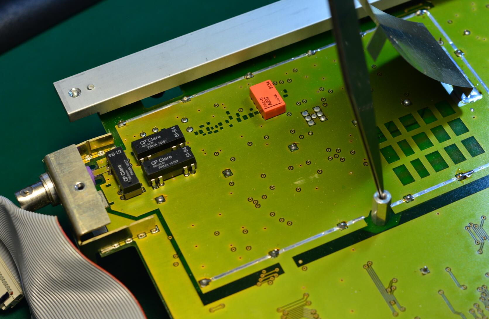 - 3.长时间开机时(几十分钟到几个小时),偶尔会自动关机。起初怀疑开关电源电容老化,只更换了副边侧的电容,问题依旧。但使用200V直流电给频率计供电运行时从未出现自动关机的问题,因此把原边侧的电解电容换了,问题解决。